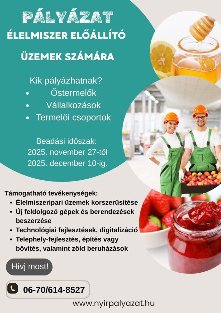 Új pályázat élelmiszeripari és feldolgozó üzemek fejlesztésének támogatására